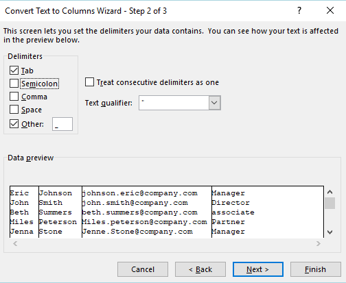 Using text to columns: