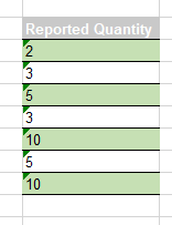 Open the Values sheet and you will see Excel marks with a green triangle each value in the table.