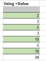 Copy the formula down and the errors have been removed and the values are now numbers. The sum function should now work.